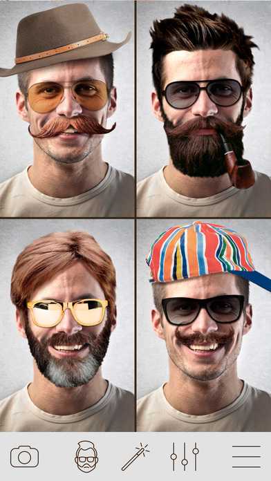 Hair-Changer-Photo-Booth-Men-Hair-Style-Photo-EffectСофт имеет лёгкий англоязычный интерфейс и очень прост в использовании, поскольку все нужные опции обозначены значками, что облегчает понимание и позволяет подобрать причёску в течение нескольких секунд. Просто загружайте фото из галереи или делайте селфи, и выбирайте понравившуюся причёску и усы из многочисленных предложенных вариантов. Кроме всего прочего, доступна функция редактирования фотографии и такие эффекты, как яркость, контрастность, насыщенность, тени, блики, фокус и другие. Вы также можете подобрать интересные аксессуары, например, трубку, солнцезащитные очки и бейсболку. После завершения редактирования фотографии её можно сохранить в памяти телефона, распечатать или отправить друзьям в соцсети.