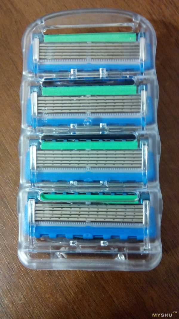 Кассеты для лезвий практически идентичны оригинальным и на них мы внимание заострять не станем, разве что покажу как они выглядят и как выглядит одинокое оригинальное лезвие на фоне остальных.