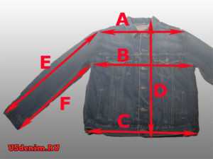Линия С – показывает ширину куртки в самой нижней части. Определить эту цифру можно, измерив расстояние по манжете-поясу, пришитой внизу джинсовой куртки, или просто по нижней части изделия, если фасон куртки удлиненный.