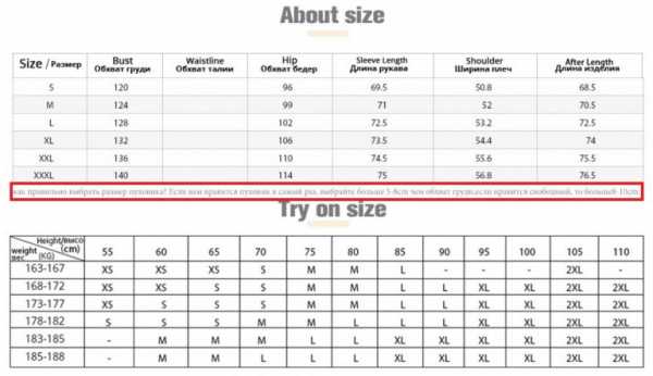 Как подобрать размер куртки по таблице на Алиэкспресс?