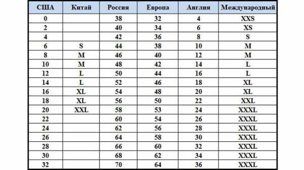Женские размеры одежды: (США, Китай, Россия, Европа, Англия)