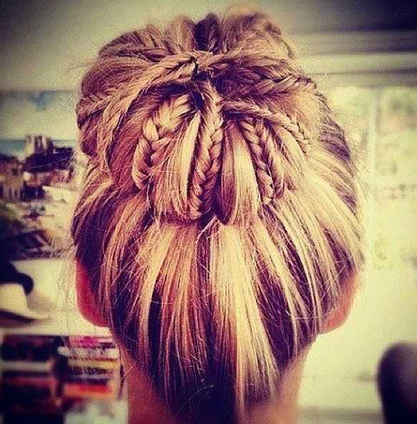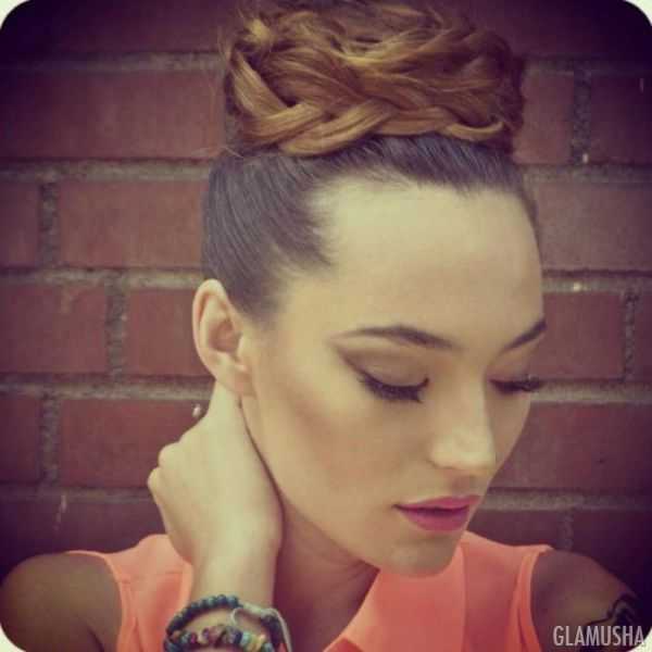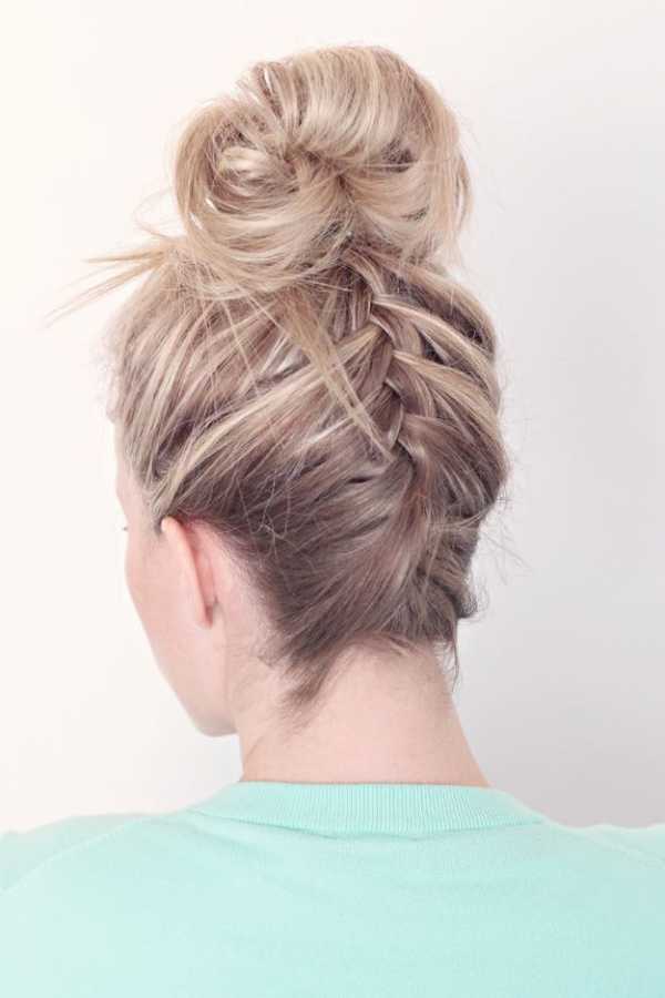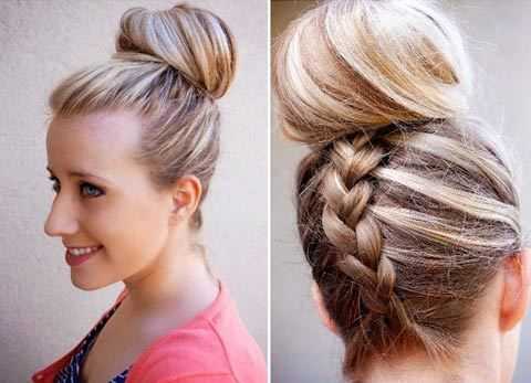 Еще один вариант: Сделайте французскую косу на затылке, а на макушке закрутите пучок. Очень красивая прическа! Также не забывайте про аксессуары – повязки, косынки, банданы, кепки и т.д.