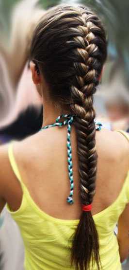 Любые прически для занятия спортом подразумевают, что волосы не будут лезть в глаза, закрывать обзор, растрепываться. Другая, не менее популярная спортивная прическа – это коса. Чем больше косичек заплетено на голове у девушки, тем лучше они будут держаться. На очень короткие волосы косу не заплетешь: длина должна быть хотя бы до плеч.