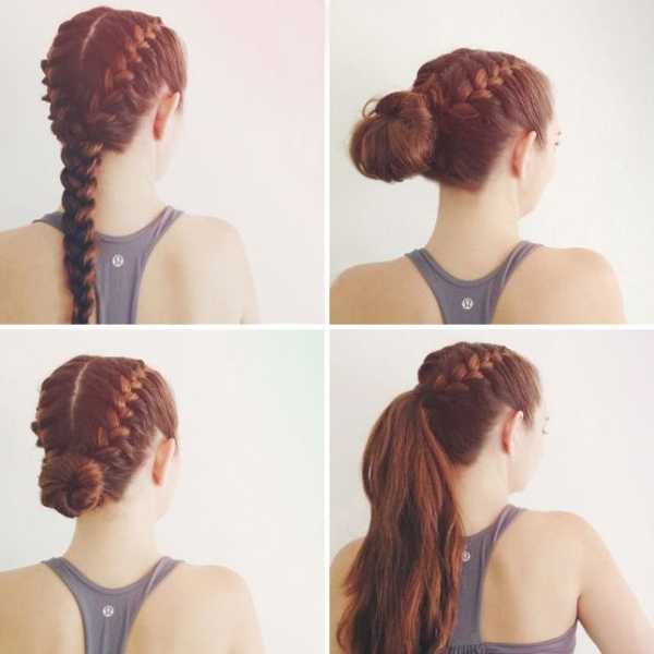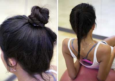 Что же касается места расположения косички, то собирать ее лучше всего сзади головы или по бокам. Прически для фитнеса – все возможны узлы и пучки.