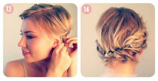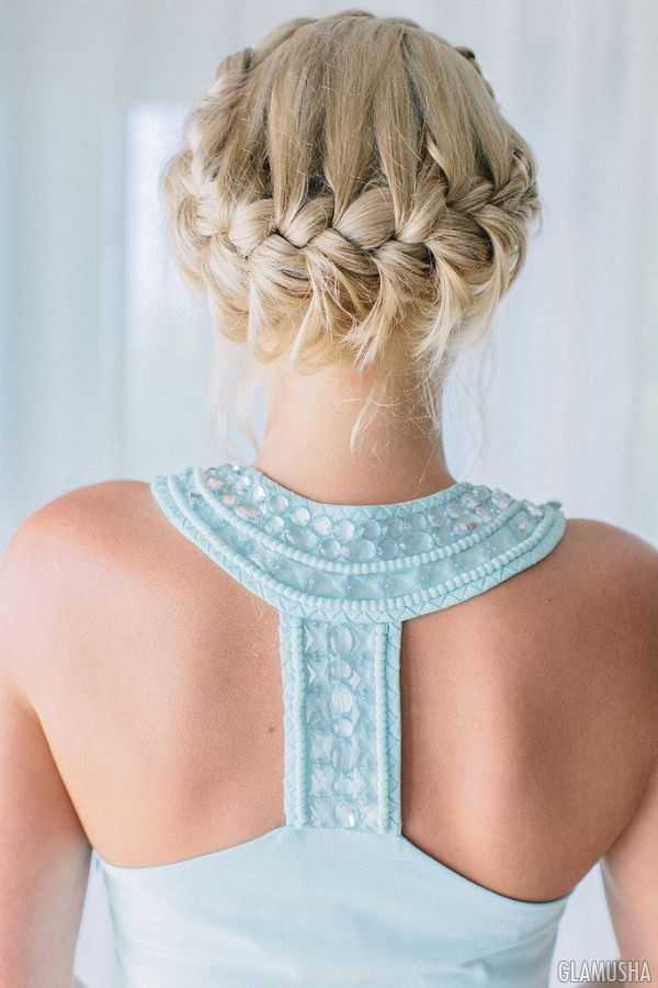 Для коротких волос до уровня подбородка можно собрать волосы во французскую косу по бокам или вокруг головы.