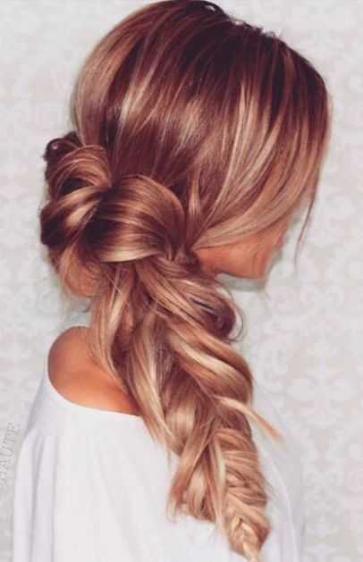 Для торжественного вечера отлично подойдет богемная коса, французская коса на оборот, коса из 5, 6 и даже 12 прядей.