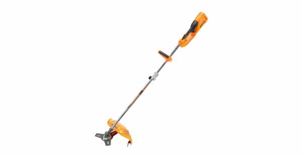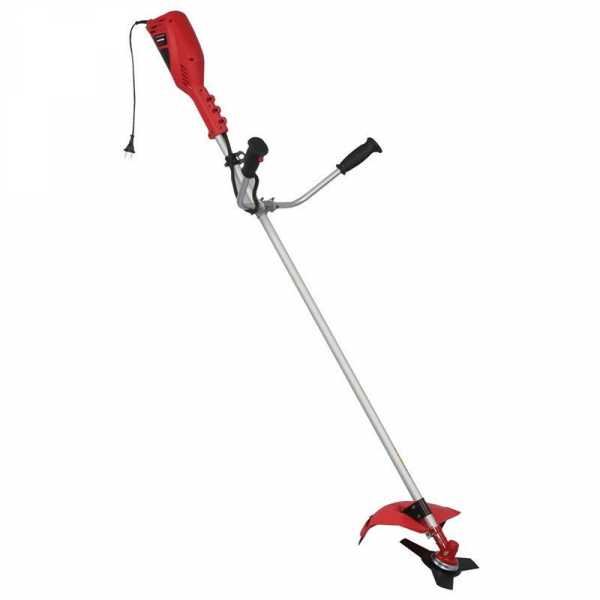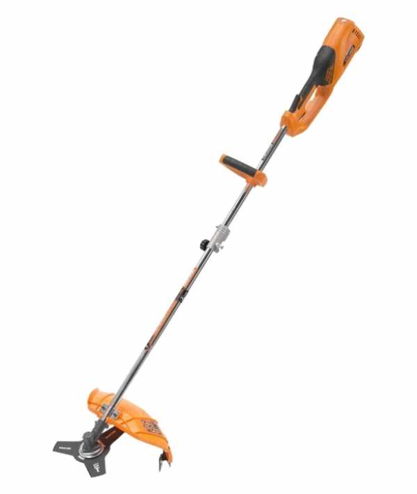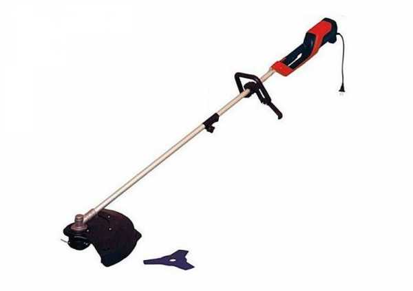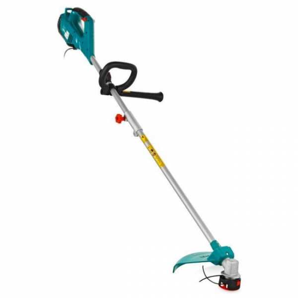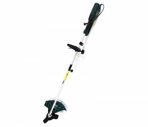 Удобная и практичная модель, легко справляется даже с зарослями сорняка. Кошение выполняется и леской, и режущим ножом. Диаметр лески – 2 мм, ширина покоса – 37 сантиметров. Этот триммер довольно компактный, его легко хранить и транспортировать. Оснащен рукояткой D-образной формы, которая упрощает подход даже к труднодоступным местам. Металлический нож не деформируется при столкновении с камнями и прочими острыми предметами.