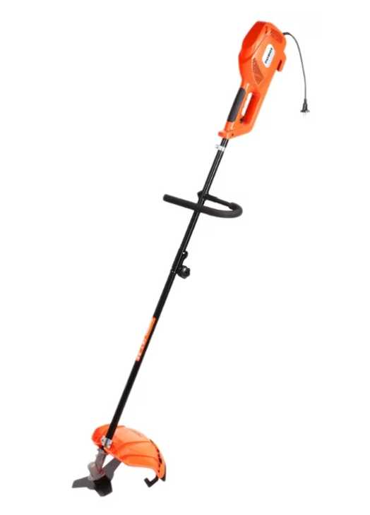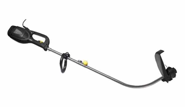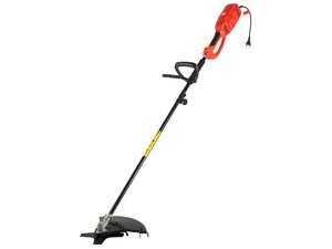 В комплектации товара имеется специальный защитный кожух на инструмент. Устройство оборудовано парой ручек, что существенно облегчает фиксацию электрокосы в процессе работы. Двигатель модели оборудован в нижней части – оператор практически не ощущает вибрации.