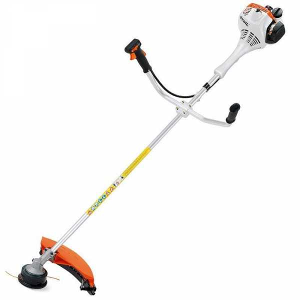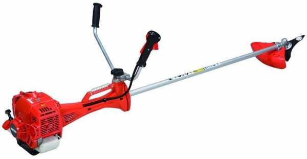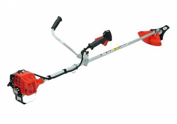 Трехлопастный режущий нож, максимальное количество оборотов – 6850. Комплектуется баком для топлива, объемом 0,65 литра, объем двигателя – 33,5 кубических сантиметра, мембранный карбюратор. Качественная эргономичная ручка велосипедного типа с системой управления.