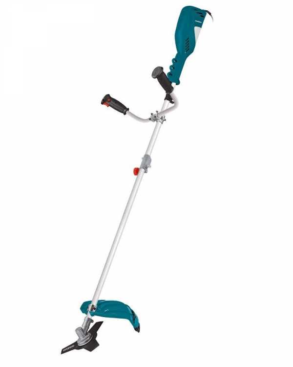 Makita UR3501На четвертом месте оказался триммер Makita UR3501. Достаточно мощный представитель (1000Вт) с весом 4,3 кг. Устройство имеет изогнутую форму штанги, отличается верхним расположением двигателя.