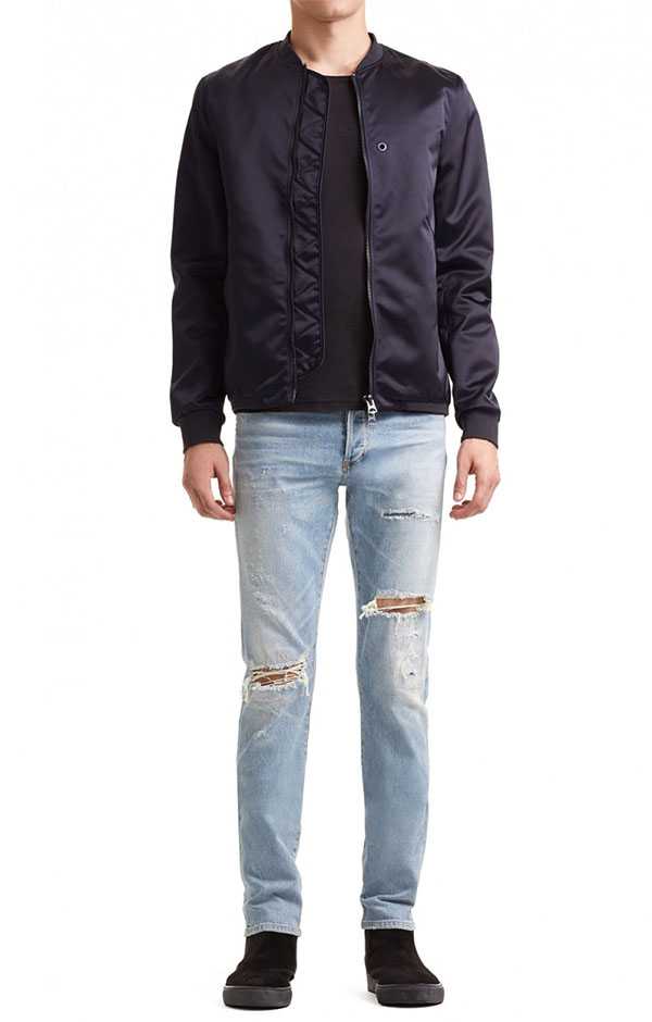Купить мужские рваные джинсы недорого можно без особого труда. Но надо знать, с чем их сочетать, чтобы получился стильный образ. За помощью можно всегда обратиться к продавцу—консультанту или ознакомиться с рекомендациями ведущих стилистов до похода за покупками. Еще один отличный выход из трудной ситуации — заняться шоппингом с друзьями или любимой девушкой, но они при этом должны быть в курсе модных тенденций. Надо учитывать, что зауженные брюки из денима с различными потертостями и разрезами неуместны в сочетании с классическими верхом. Если все—таки хочется носить рубашки, выбирать следует приталенные варианты с интересными расцветками, желательно немного темнее самих джинсов. К такому образу в прохладную погоду можно добавить жакет, но его длина не должна быть намного ниже пояса брюк. Обувь следует подбирать ближе к классическим туфлям. Но в жару допустимы более легкие лоферы или сандалии.