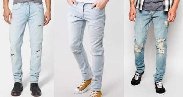 Многие популярные бренды начала выпускать джинсы с значительными повреждениями поверхности материала. Теперь самые сильные дырки, потертости и дефекты – самый пик моды. Мужчинам можно не боятся порвать свои джинсы, ведь после этого не надо покупать новые или заштопывать поврежденные. Рваные джинсы – это модно, стильно и по-хулигански.